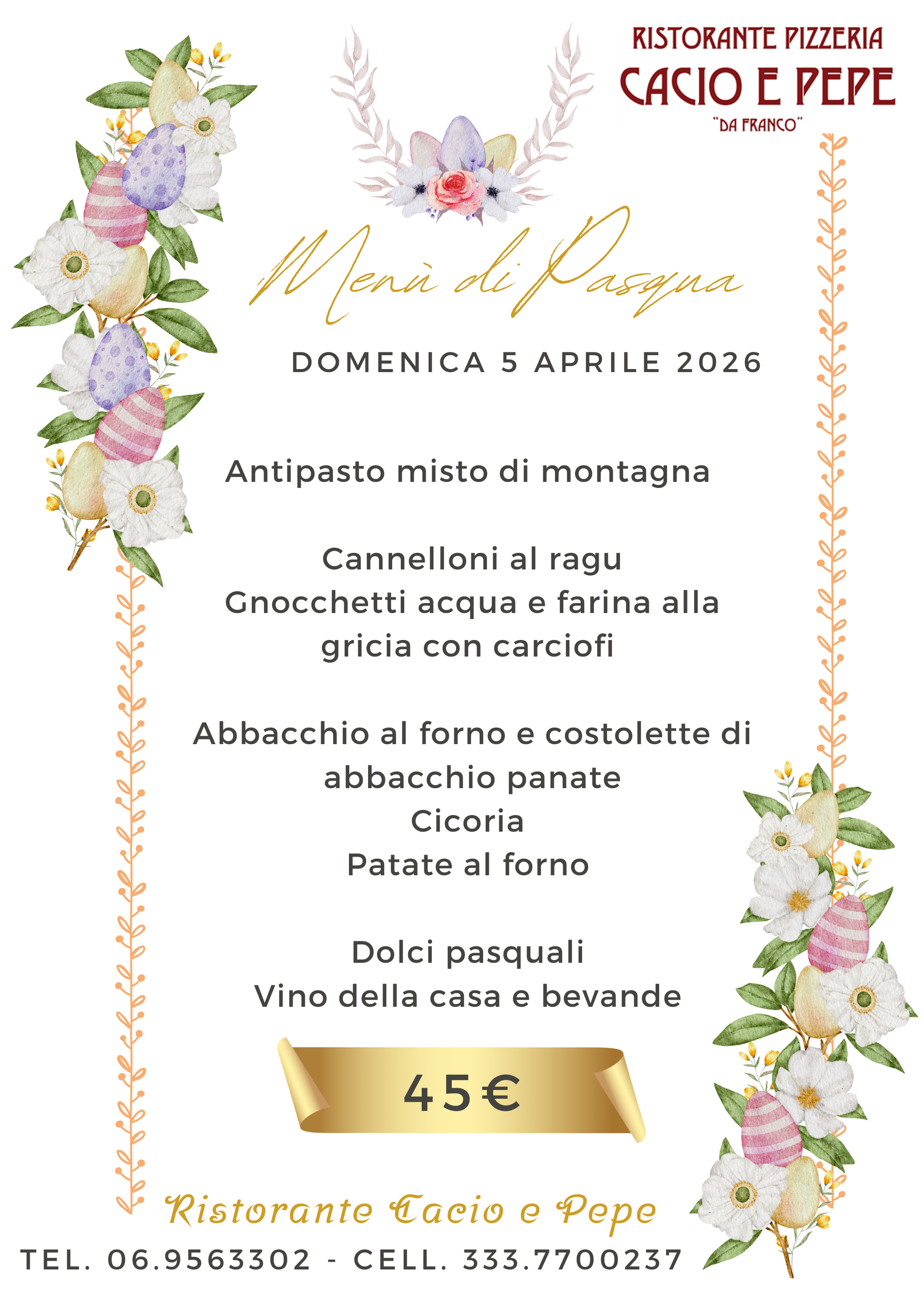 Buona giornata a tutti Voi, sono Franco De Persio, titolare e cuoco del Ristorante Pizzeria CACIO E PEPE di Olevano Romano.